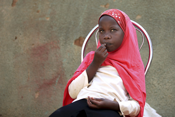 Portrait by Prossy Yohana. This image came out of assignment about depth of field. The students were learning how to use the donated SLR’s in manual mode and were asked to create portraits with a wide aperture which creates a shallow depth of field. I loved the pensiveness of this image and thought the shallow depth of field worked beautifully to isolate the girl against the background..