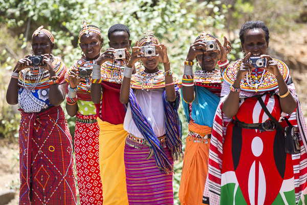 Some of my Samburu workshop women practice photographing after their first training session. The women are members of a women’s empowerment group–the On’gan Women’s Cooperative–which was formed in 2008 and brings women together in collaboration to start they own initiatives and is generally a community resource to build self-determination and autonomy.