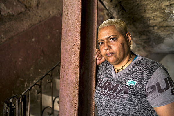 Yarlenys Torres, 34, is photographed in the hallway of her building where she dries laundry. She lives with her husband and two children in an apartment that doubles as her husband’s tattoo parlor. While she completed a basic computer course after high school and also sings and writes, she’s happy being a mother and wife at the moment. “I have everything I want–a family, a home, love,” she says. “I dream of traveling to Brazil one day because I thing my grandfather was from there and I would love to experience it.” Of Cuban women, she says “we are social, loving and communicative. We keep the family together.”