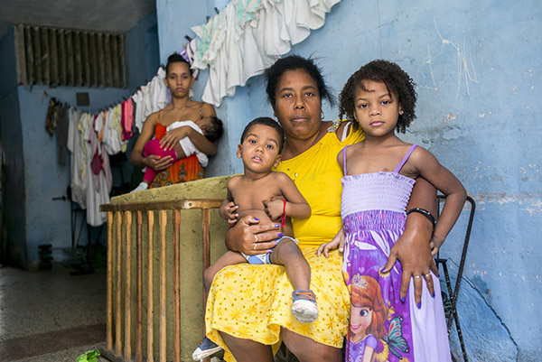 Caridad Miranda, 53, photographed in her home with some of her family members and the laundry from her youngest grandchildren, lives with her husband, eight children and eight grandchildren. She studied theater at the prestigious “Instituto Superior de Arte” and has been a singer and actor, even performing in several Cuban movies. “The hardest thing in my life right now is our housing situation because there are just too many people living here and not enough food. We gets food rations but it’s not enough for all of us.” Of Cuban women, she says “being a Cuban woman means being everything for one’s family.”