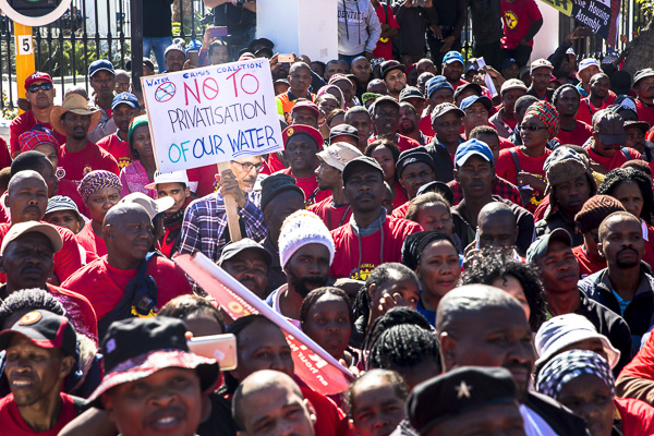 A public protest in front of the parliament building on South Africa’s “Freedom Day” on April 27th this year included signs protesting the privatization of water. Ironically, Cape Town’s water crisis has been a boon to water privatization with the bottled water industry seeing huge growth in sales and private desalination plants setting up shop on the Western Cape’s shoreline.