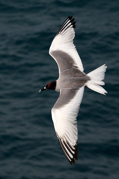 A swallow-tailed gull wings over the ocean on South Plaza Island. Strangely, this gull forages at night and their white forms appeared quite eery and ghost-like as they plunge into the ocean in the darkness.
