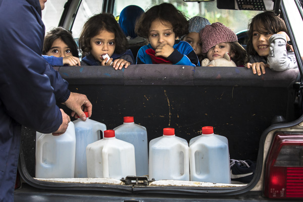 As with any crisis, creative entrepreneurs have found ways of making some income from the city’s water crisis. Here, enterprising workers, for a fee, offer to transport heavy water containers from a public spring on Spring Road to residents’ waiting cars.
