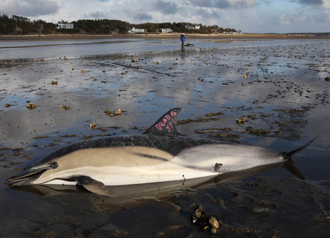 Yesterday around 30 dolphins stranded along the shores of Cape Cod Bay from Dennis to Wellfleet. While strandings happen all the time on Cape Cod, particularly in the winter months, what made this one different was the sheer numbers and how spread out the dolphins were geographically. While no one really knows why the dolphins stranded, the previous day’s intense 30mph winds were suspected of having played a role.