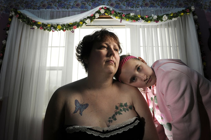 Michelle Gabel: I began this project, “The Art of Reconstruction,” with writer Janet Gramza, featuring former nurse and tattoo artist, Kim Leach, who uses tattoos to cover the scars of mastectomy patients. In the process, we also ended up documenting the stories of two breast cancer survivors whose recoveries were aided by having Kim turn their scars into works of art. These women said getting the tattoos marked the first time they were able to take control of their bodies since being diagnosed with cancer and also helped them to feel better about their appearance after painful and frightening treatments and surgeries. The story was published in The Post-Standard, the daily newspaper in Syracuse, NY.