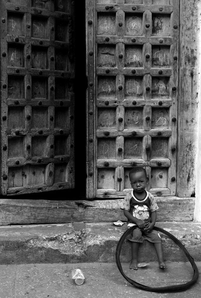 One of the most striking things about Stone Town is the beautiful and massive wooden doors one sees. Many of them have carvings and bas-reliefs and some even have the brass studs one sees in India which were originally invented to discourage elephants from breaking down the doors. Of course Zanzibar has so elephants so these are purely decorative. I thought I’d post a couple of portraits I shot in which one can see the beautiful Zanzibarian doors. While one is of an old man and the other a young boy, I thought there was something about their body language, the position of their hands and their expression that linked them.