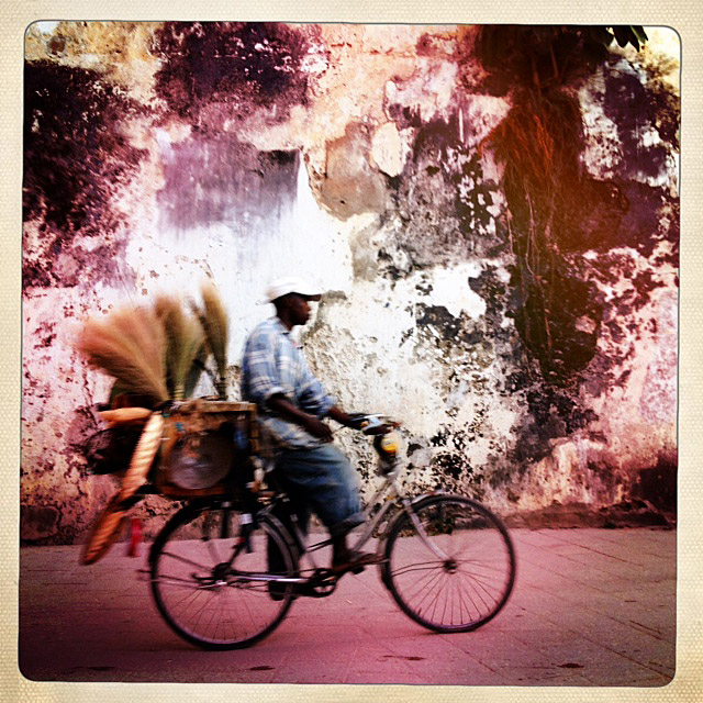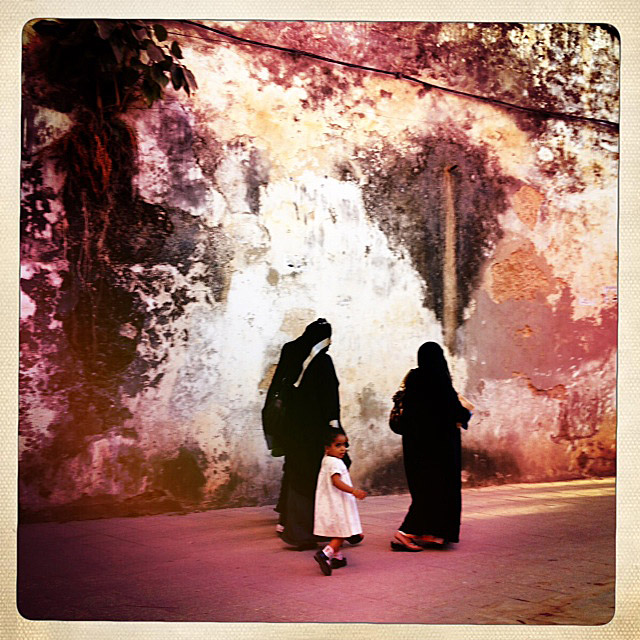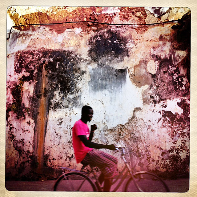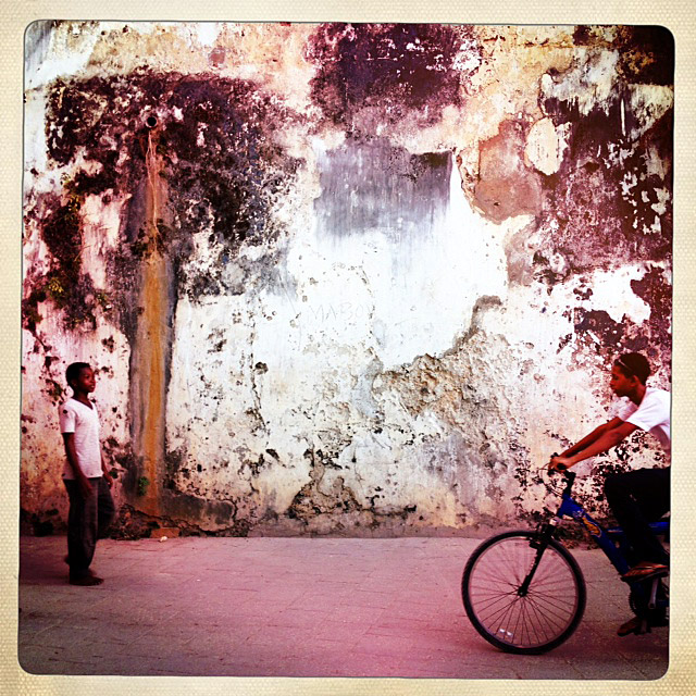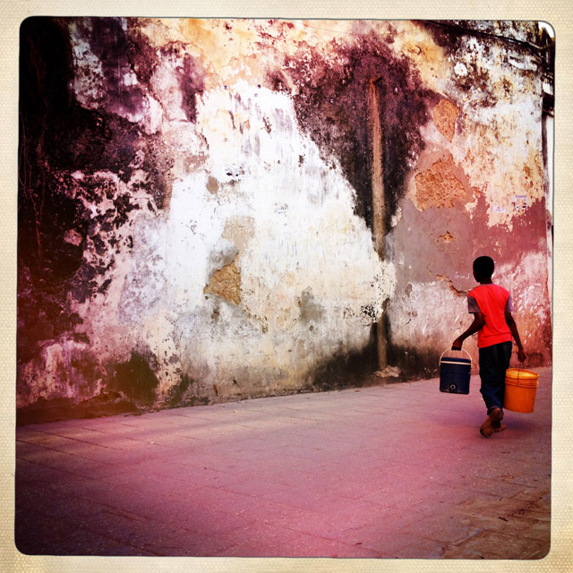 Today I found a fantastically moldy wall in Stone Town, Zanzibar, where I am working on a photo project about shellfishing. It was such a wonderfully textured wall–really like a painting more than a wall–that I couldn’t tear myself away from it. I decided to stay there for a while and photograph the wall as people passed by.