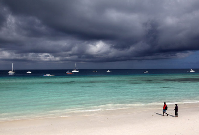 So this morning I woke up to not only an amazing view of the ocean but a very dramatic sky. It looked like a storm was moving in and the contrast between the placid blue water and the ominous-looking sky was just extraordinary. If I didn’t know Zanzibar, I would have thought a tropical storm or at least a torrential downpour was headed our way. An hour later, the sky had cleared and the drama was replaced by beach goers slumbering in the sand, their barely-covered bums saluting the sun.