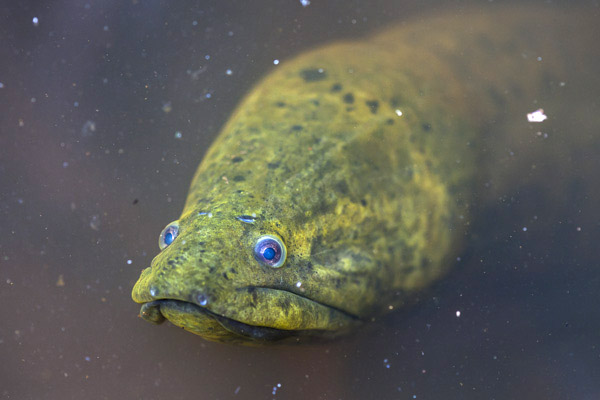 An electric eels hunts for food in Condenado lake. Apparently this eel is capable of generating electric shocks of up to 860 volts! It uses this unusual adaptation for hunting, self-defense and for communicating with fellow eels. Despite its name, it is not actually an eel, but rather a knifefish.