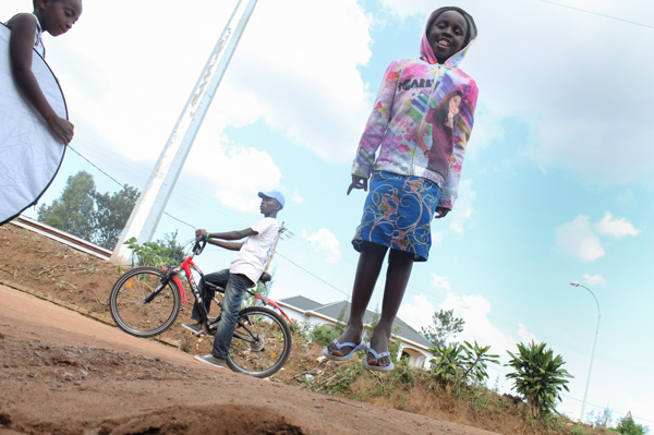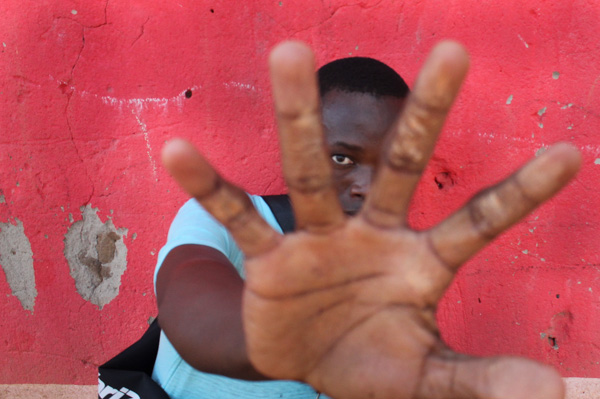 When I first arrived in Kigali, I had no idea what to expect. During my first few days of teaching, I presented some techniques for creating portraits and self-portraits to the students and showed them lots of images that illustrated the techniques. It immediately struck me how engaged they were with the images I was showing them. We talked a lot about composition, lighting, altering one’s visual perspective, using props, choosing interesting backgrounds, using reflections, finding good door or window light etc. I soon had them standing on tables, shooting from the ground, seeking out colorful walls in the neighborhood and generally experimenting with the techniques we’d talked about. It was quite a sight–the group of us carrying cameras and a big reflector around the neighborhood, often attracting interested crowds. There were many lovely moments, lots of laughter and general joy in these photographic adventures.