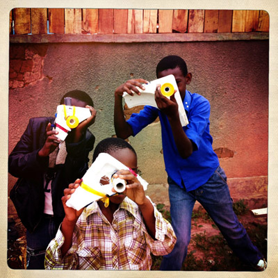 The younger siblings of my students played a really important part in our workshop, often holding equipment or posing as subjects for the photos. Towards the end of the workshop, I came out of the studio only to discover they had made their own "cameras" out of styrofoam and other bits and pieces. They were enthusiastically photographing everything in their path, including me. They had even used bottle caps as shutter buttons! I was so moved by their creativity and was happy to see their interest in photography playing out in this wonderful way. I have no doubt they will be the next generation of "Through the Eyes of Hope" students.