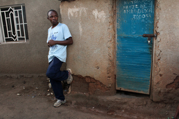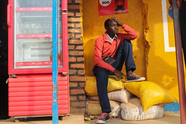 Portrait by Sustain Kabalisa. This security guard was one of the community members to visit the studio on Valentine’s day. I was struck by the beautiful light in this image and the seriousness of his pose.